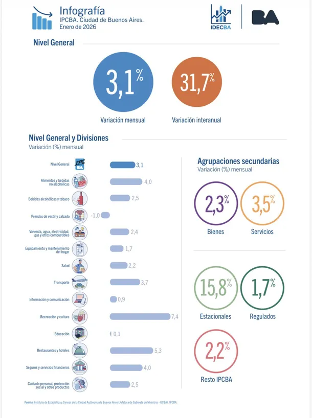 Este dato de la Ciudad suele funcionar como un anticipo de la inflación nacional que el INDEC dará a conocer en los próximos días, marcando un piso de preocupación para la economía en el inicio del año.